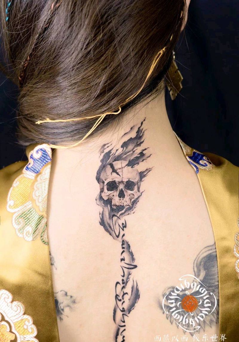 当前位置: 首页 >西藏拉萨市纹身店-西藏极乐世界纹身纹身图案>骷髅藏文纹身图片_背部藏文纹身图案