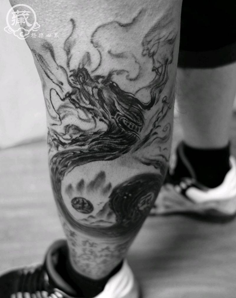 • T网红王老大花腿龙纹身图片_腿部新传统纹身图案