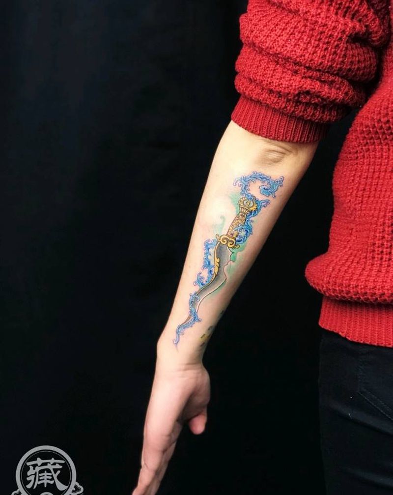 藏式水波利刃纹身图片