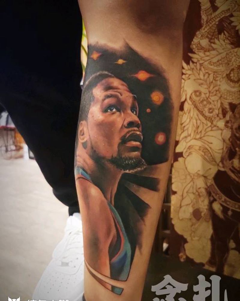 杜兰特纹身图片_腿部欧美写实纹身图案