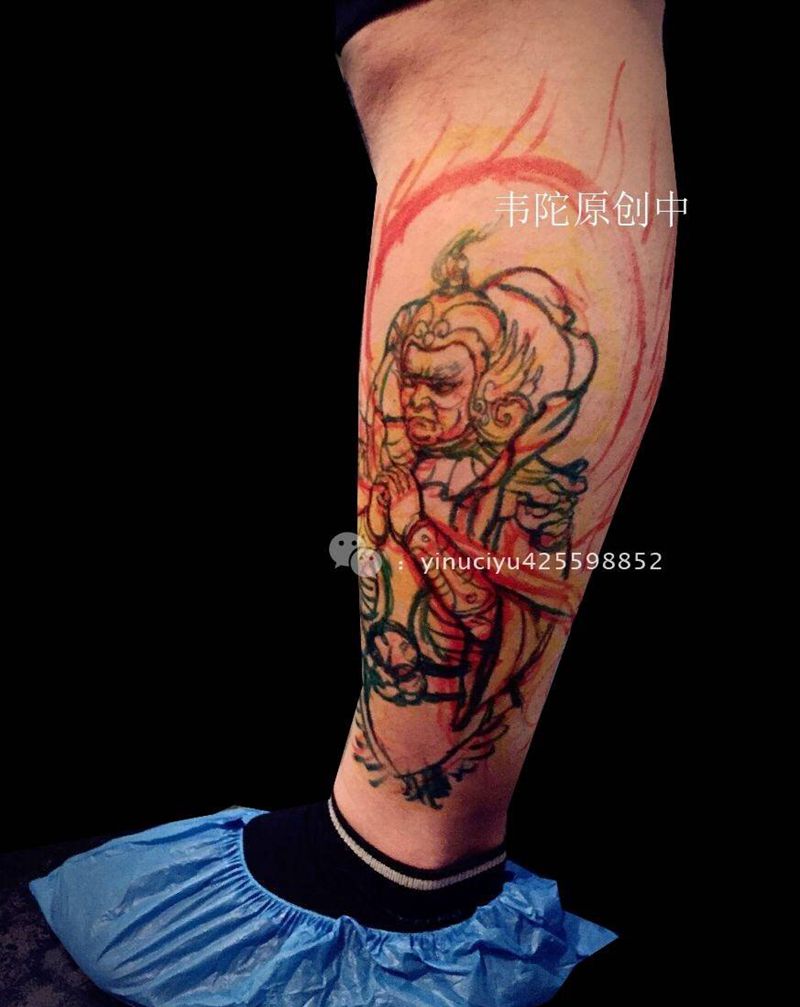 原创包腿韦陀纹身图片_成品腿部传统人物原创艺奴刺域纹身图案