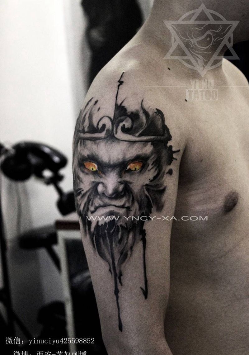 当前位置: 首页 >陕西省西安市纹身店-艺奴刺域纹身图案>原创斗战胜佛纹身图片_成品肩部传统原创鬼神人物艺奴刺域纹身图案