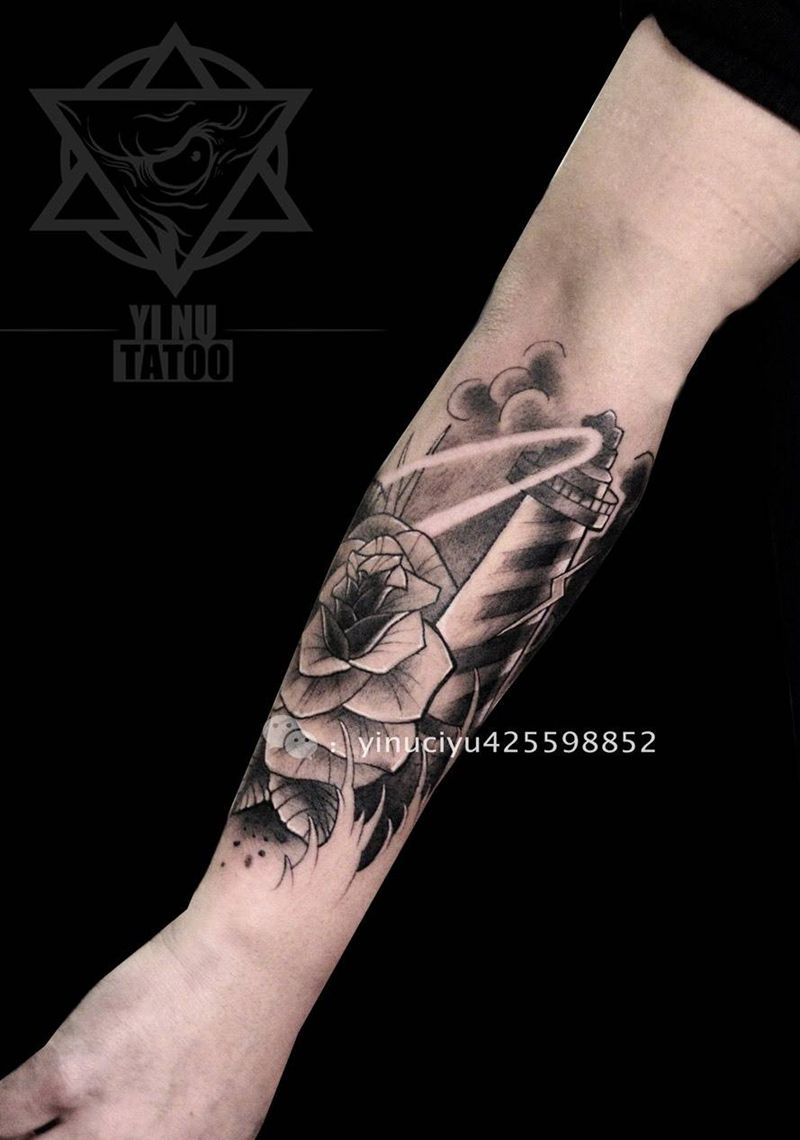 原创灯塔纹身图片_成品手臂欧美艺奴刺域原创纹身图案
