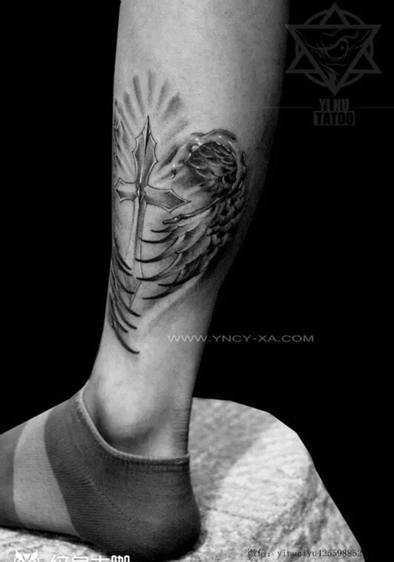 原创十字架纹身纹身图片_成品腿部传统十字架纹身图案