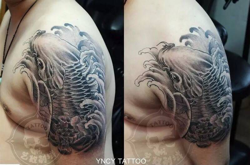 当前位置: 首页 >陕西省西安市纹身店-艺奴刺域纹身图案>原创鱼纹身图片_成品手臂传统动物纹身图案