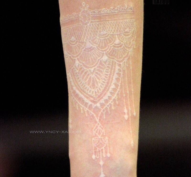 原创白色蕾丝纹身纹身图片_成品手部清新白色纹身图案