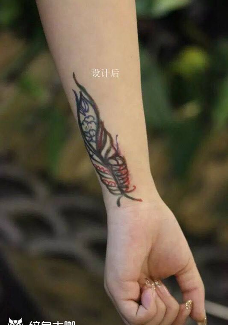 当前位置: 首页 >陕西省西安市纹身店-艺奴刺域纹身图案>羽毛遮盖纹身图片_成品手臂清新艺奴刺域纹身图案