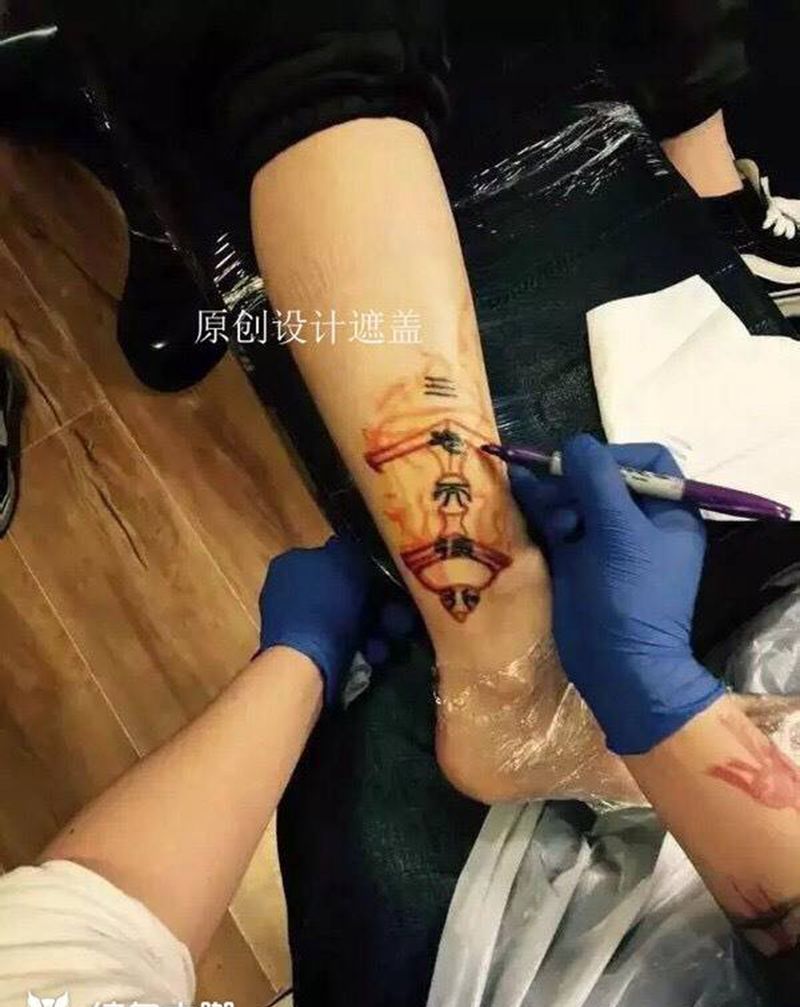 原创烛灯遮盖纹身图片_成品腿部欧美纹身图案