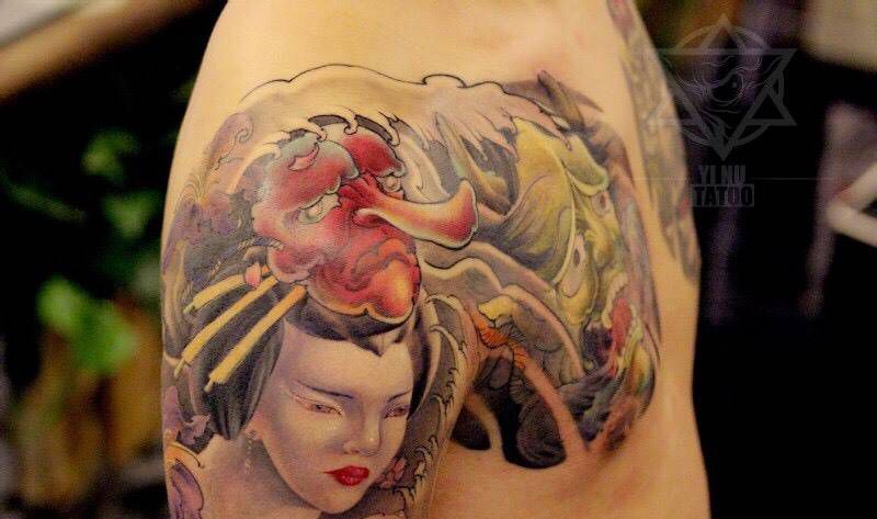 当前位置: 首页 >陕西省西安市纹身店-艺奴刺域纹身图案>原创艺妓半胛纹身图片_成品手臂胸部传统原创艺奴刺域人物纹身图案