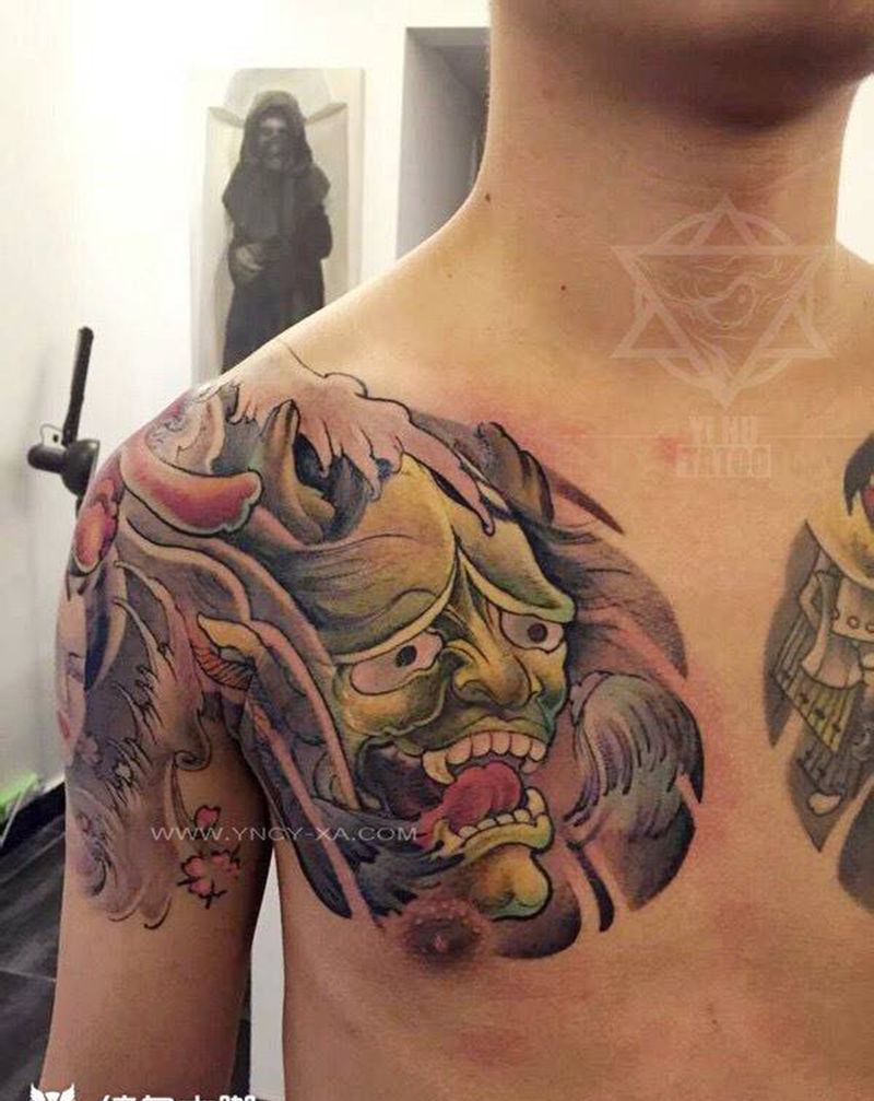 当前位置: 首页 >陕西省西安市纹身店-艺奴刺域纹身图案>原创艺妓半胛纹身图片_成品手臂胸部传统原创艺奴刺域人物纹身图案