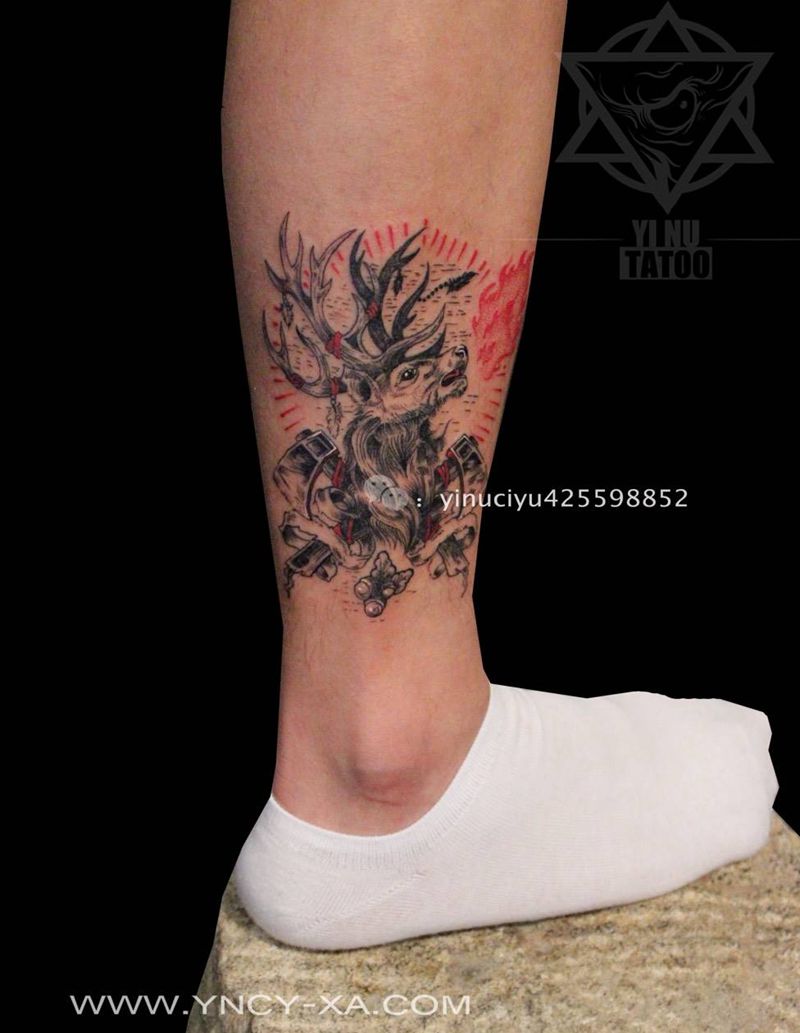 当前位置: 首页 >陕西省西安市纹身店-艺奴刺域纹身图案>鹿纹身图片_成品腿部艺奴刺域动物纹身图案