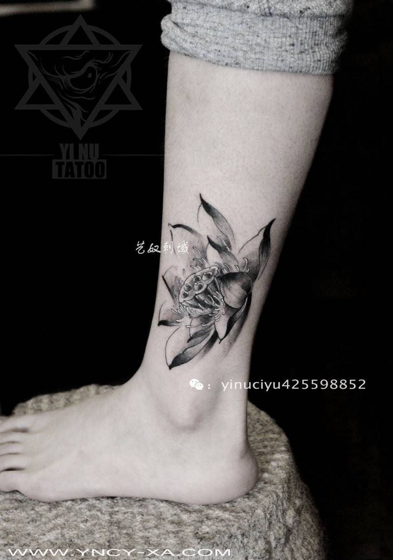 原创莲花纹身纹身图片_成品腿部传统清新原创艺奴刺域纹身图案