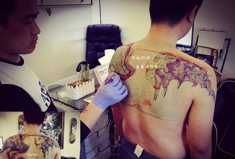 原创海景遮盖纹身图片_成品背部原创艺奴刺域纹身图案