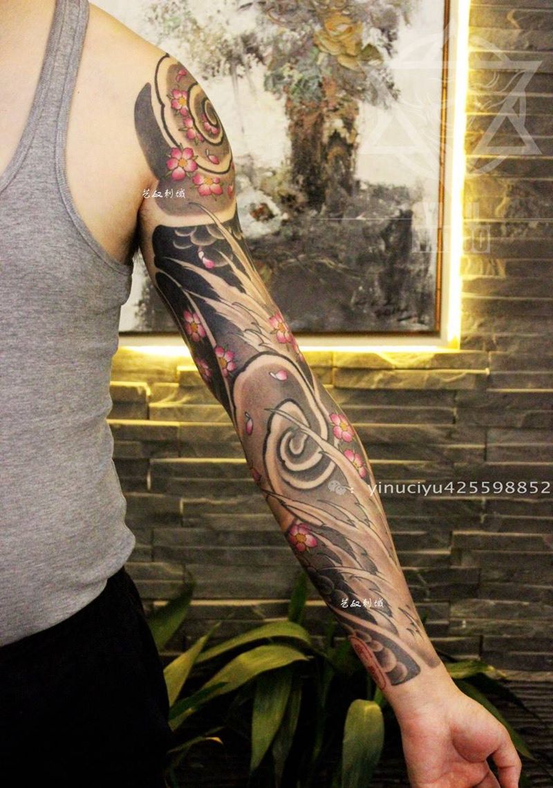 当前位置: 首页 >陕西省西安市纹身店-艺奴刺域纹身图案>原创水浪樱花花臂纹身图片_成品手臂传统原创艺奴刺域纹身图案
