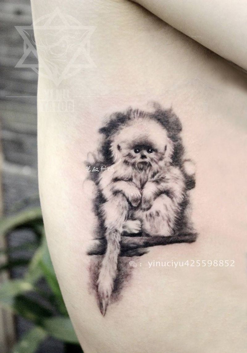 当前位置: 首页 >陕西省西安市纹身店-艺奴刺域纹身图案>猴子纹身图片_成品腰部清新写实动物艺奴刺域纹身图案
