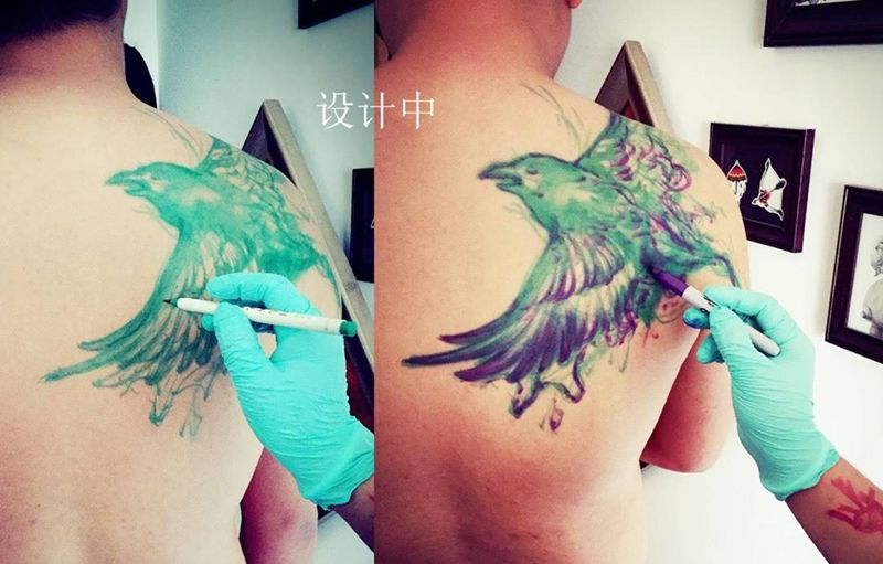 当前位置: 首页 >陕西省西安市纹身店-艺奴刺域纹身图案>乌鸦纹身图片_成品背部国画动物艺奴刺域纹身图案