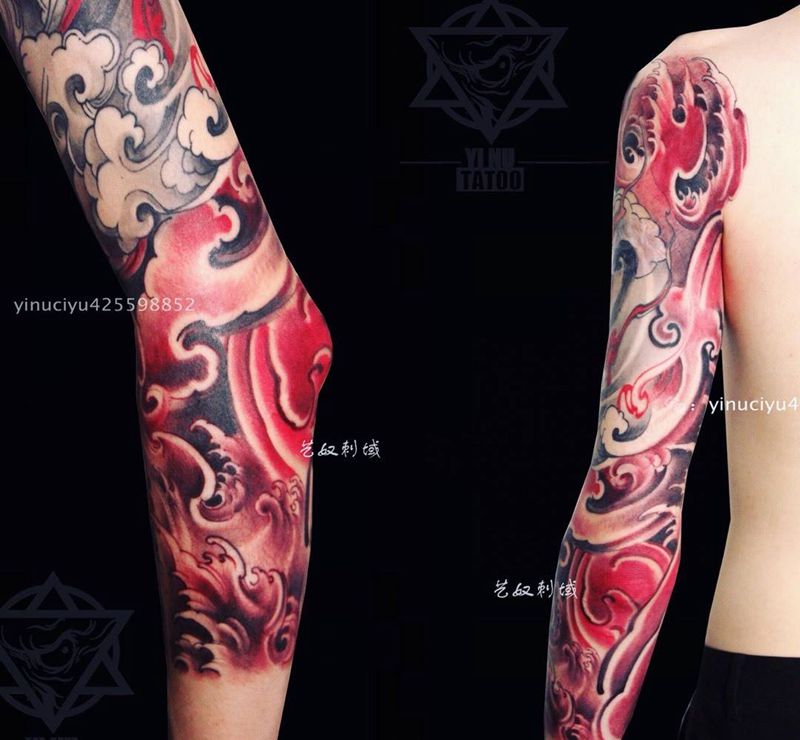当前位置: 首页 >陕西省西安市纹身店-艺奴刺域纹身图案>原创修改添加—红浪花臂纹身图片_成品手臂传统原创艺奴刺域纹身图案