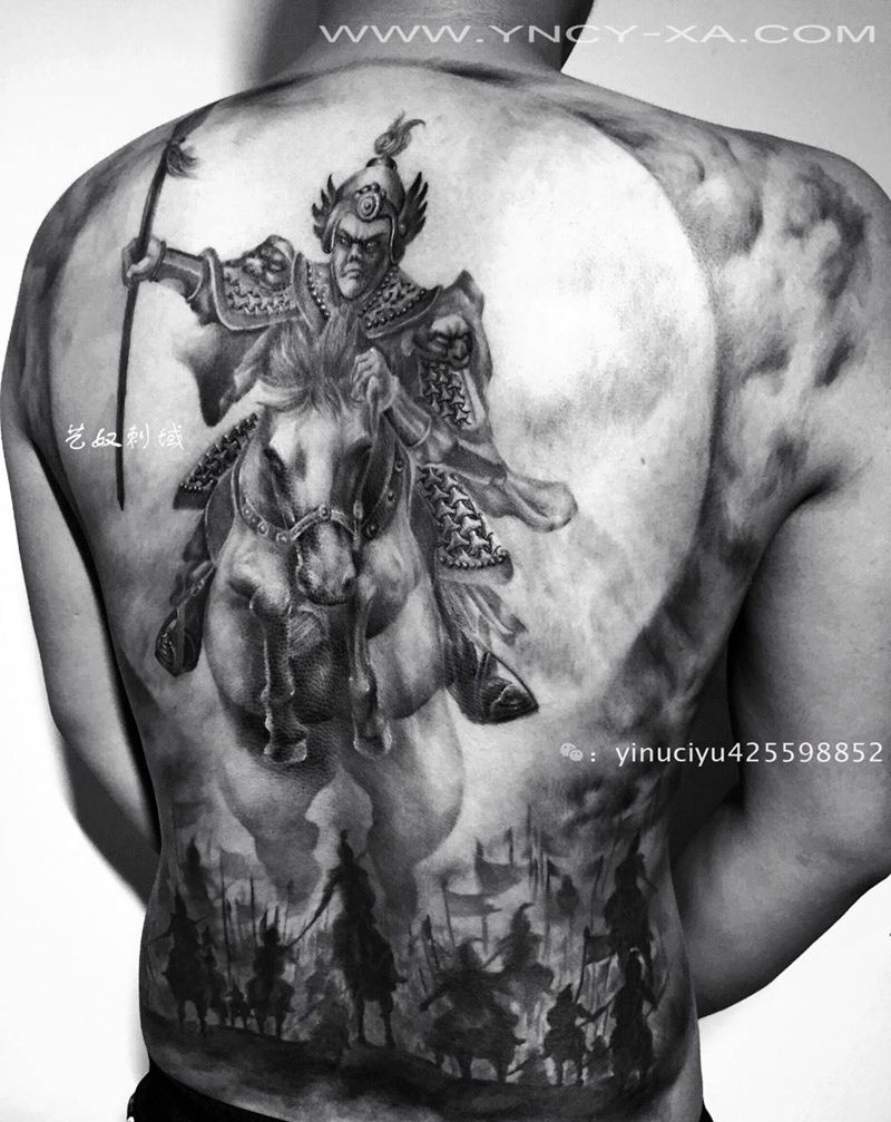 赵云满背纹身图片_成品背部传统人物原创艺奴刺域纹身图案