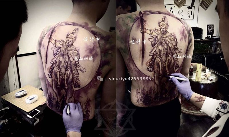 黑灰满背纹身图案