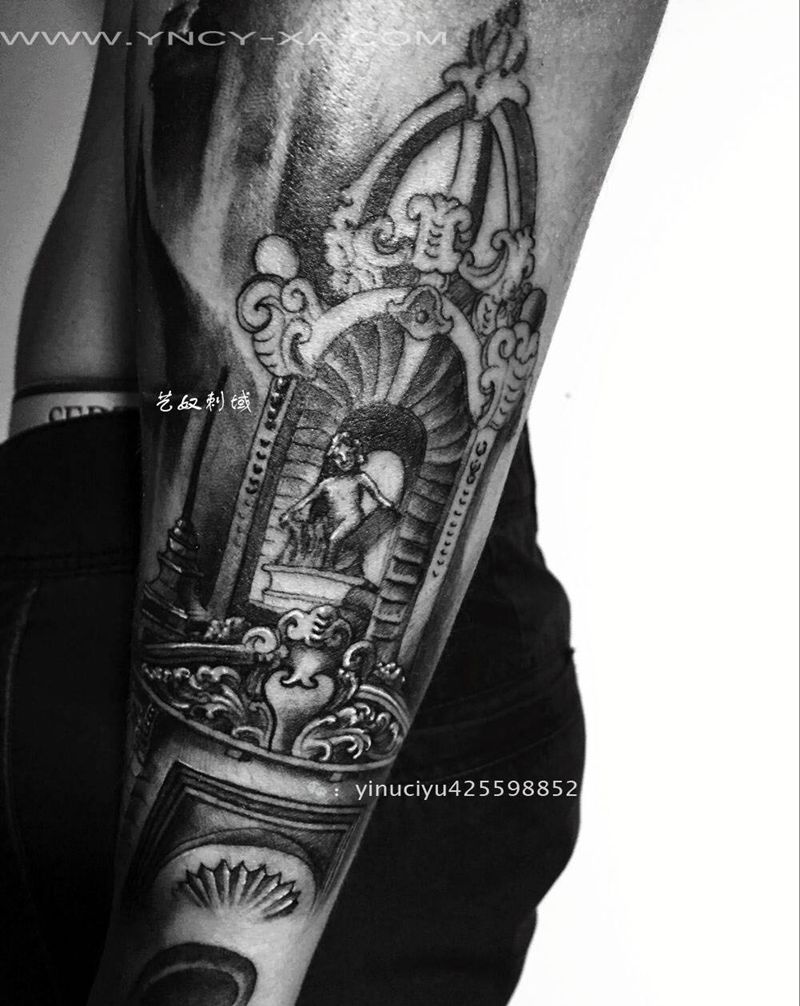 和尚老师原创花臂未完纹身图片_成品手臂欧美原创艺奴刺域纹身图案
