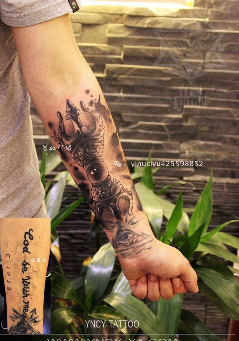 原创降魔杵遮盖纹身图片_成品手臂国画原创艺奴刺域纹身图案