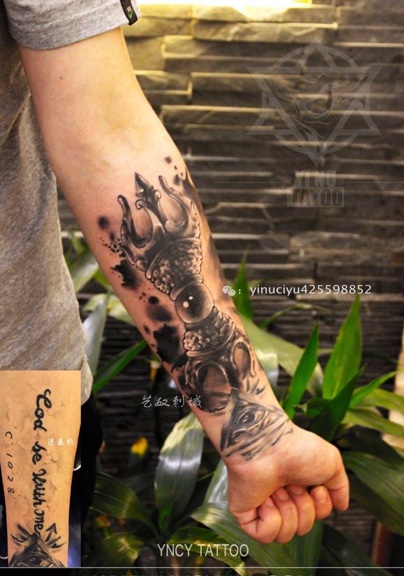 原创降魔杵遮盖纹身图片_成品手臂国画原创艺奴刺域纹身图案
