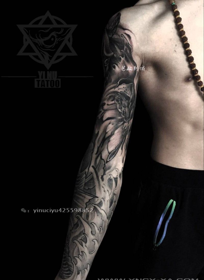 当前位置: 首页 >陕西省西安市纹身店-艺奴刺域纹身图案>原创般若鱼花臂纹身图片_成品手臂传统原创艺奴刺域动物鬼神纹身图案