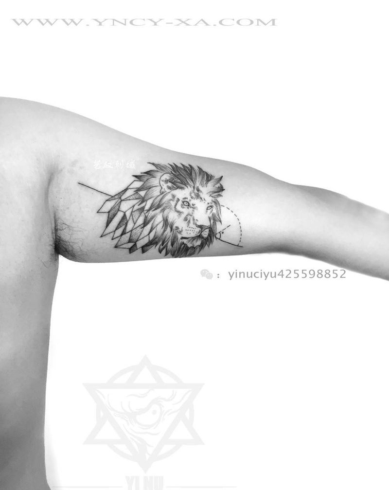 原创狮子点刺纹身图片_成品手臂清新动物几何原创艺奴刺域纹身图案