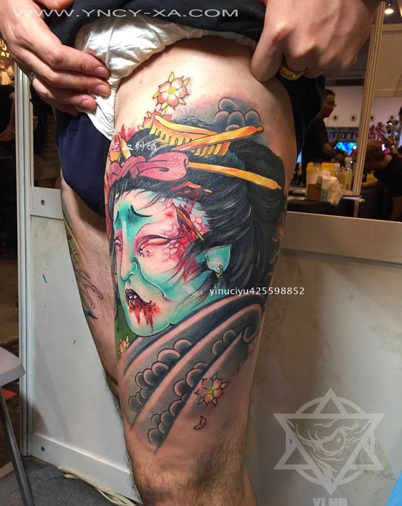 原创传统女性人物纹身图片_成品腿部传统人物原创艺奴刺域纹身图案