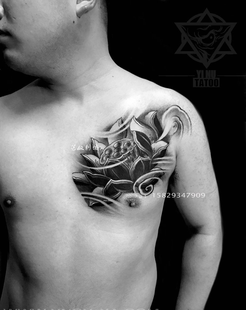 和尚老师原创莲花纹身图片_成品胸部传统艺奴刺域原创纹身图案