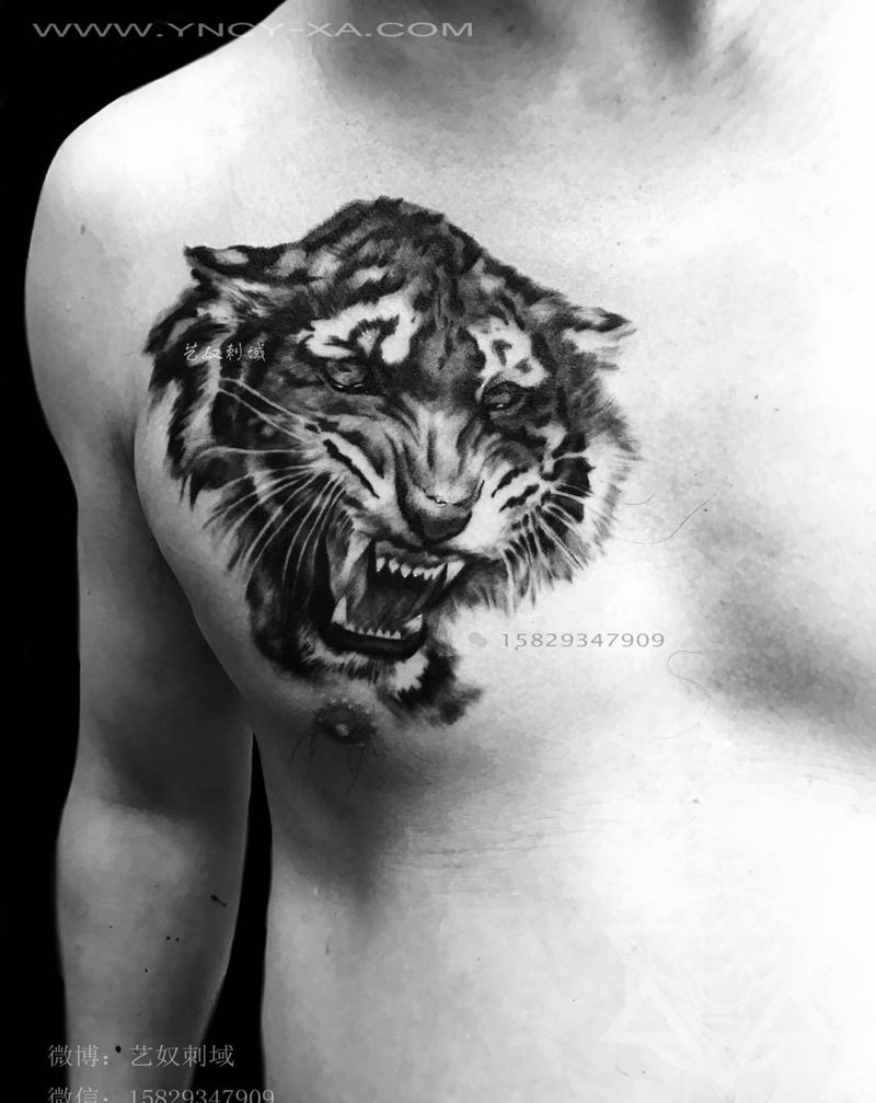 女儿的属相纹身图片_成品胸部写实动物艺奴刺域纹身图案