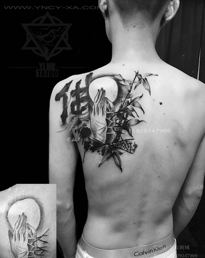 当前位置: 首页 >陕西省西安市纹身店-艺奴刺域纹身图案>遮盖修改后纹身图片_成品背部艺奴刺域国画植物纹身图案