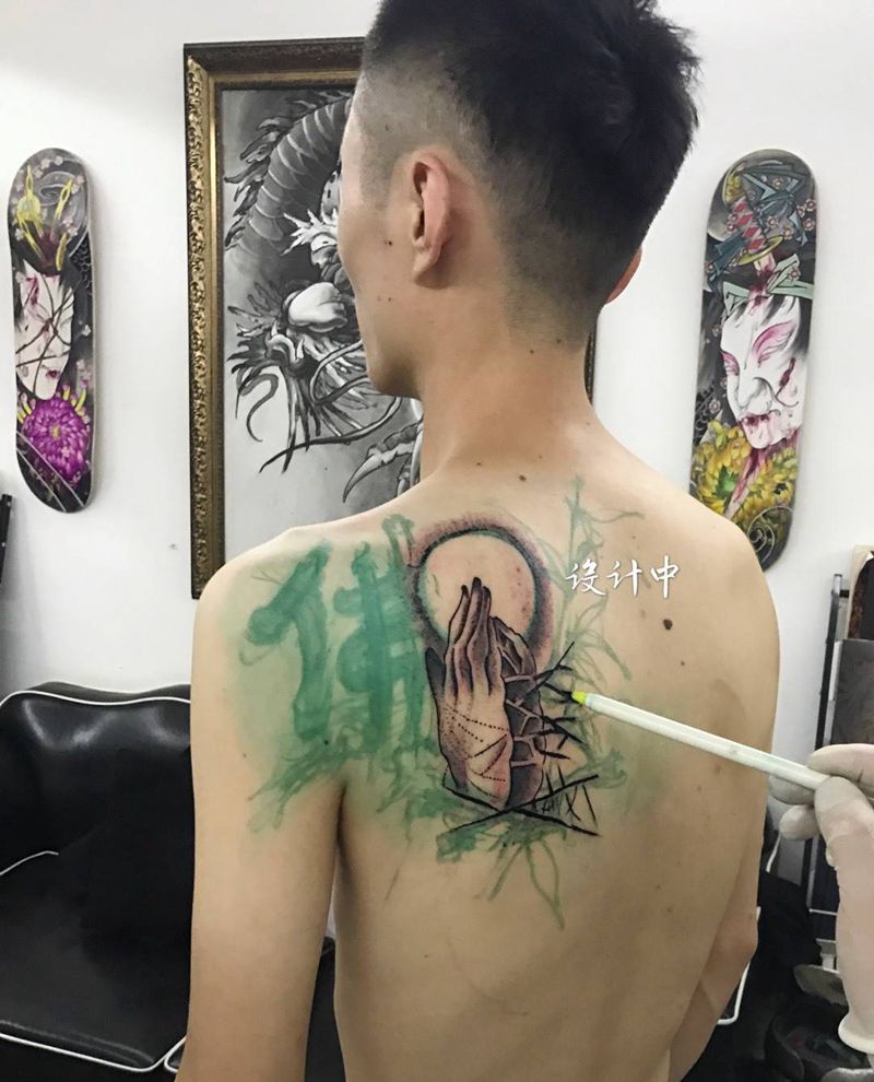 当前位置: 首页 >陕西省西安市纹身店-艺奴刺域纹身图案>遮盖修改后纹身图片_成品背部艺奴刺域国画植物纹身图案