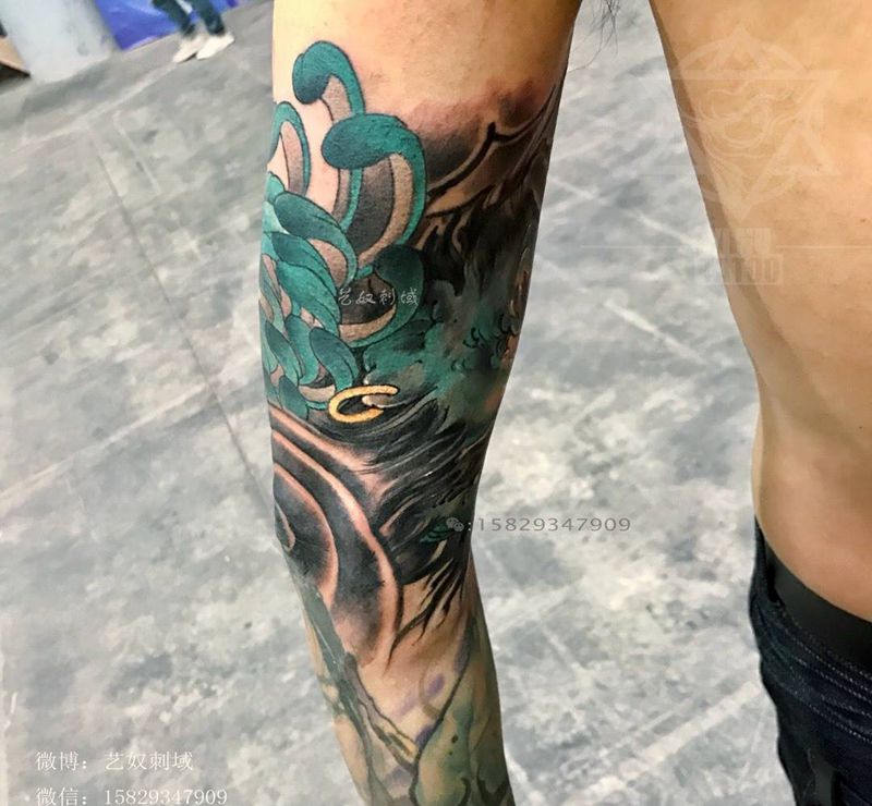 • T网红王老大花腿龙纹身图片_腿部新传统纹身图案