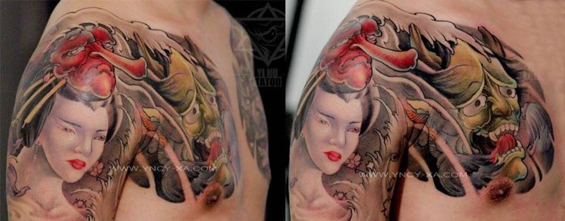 招模特,纹身费用全免纹身图片_成品艺奴刺域原创欧美传统肖像写实国画纹身图案