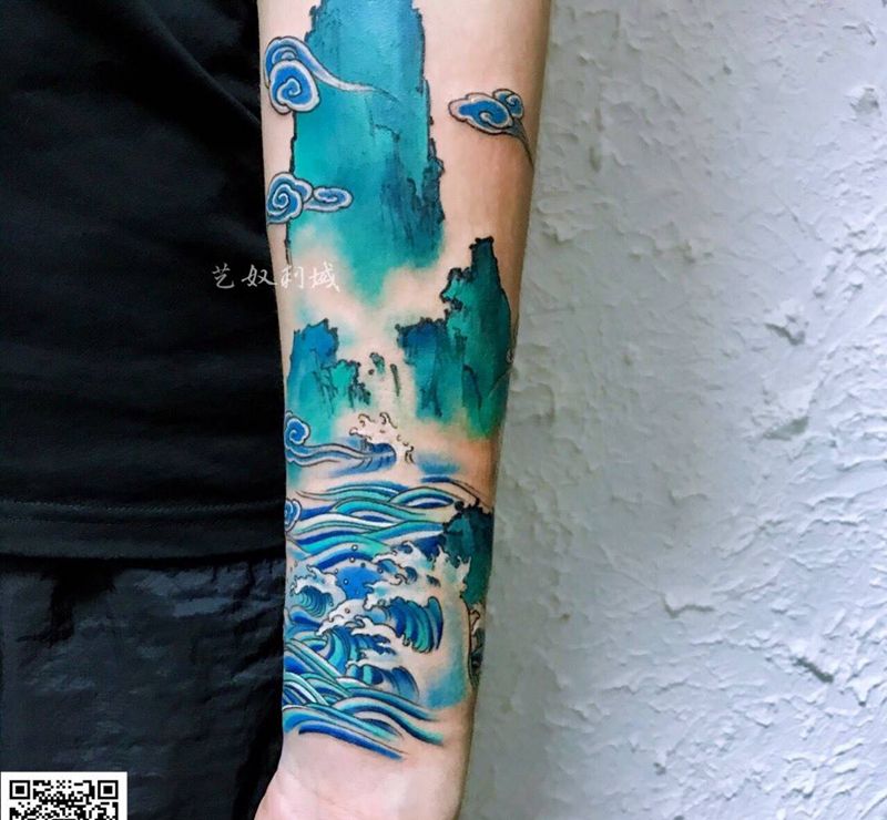当前位置: 首页 >陕西省西安市纹身店-艺奴刺域纹身图案>师傅原创青山臂纹身图片_成品艺奴刺域原创清新手臂纹身图案