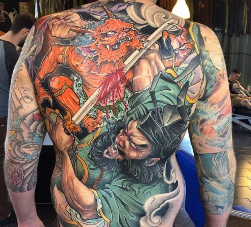 • T云龙九郎纹身图片_背部老传统云龙九郎纹身图案