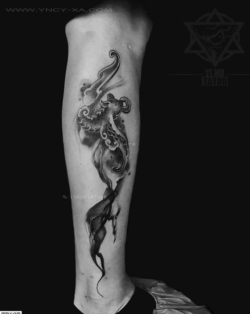 • T网红王老大花腿龙纹身图片_腿部新传统纹身图案