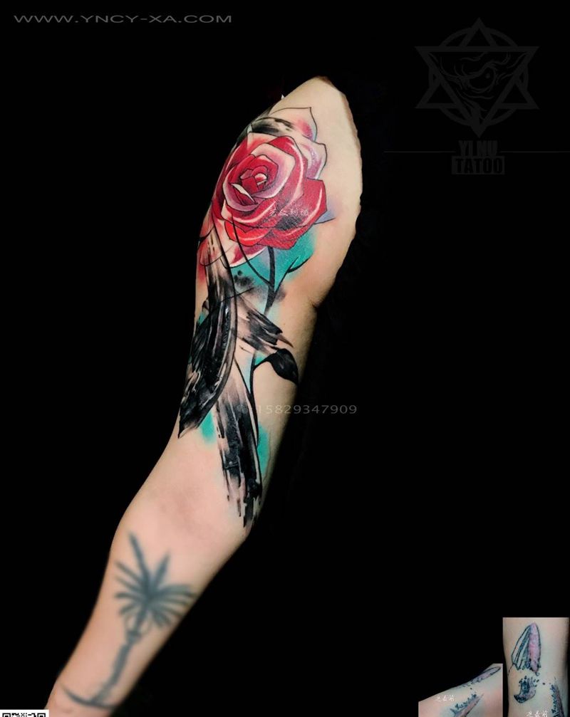 原创遮盖花旦疤痕纹身图片_成品中国风艺奴刺域水墨画人物原创手臂纹身图案