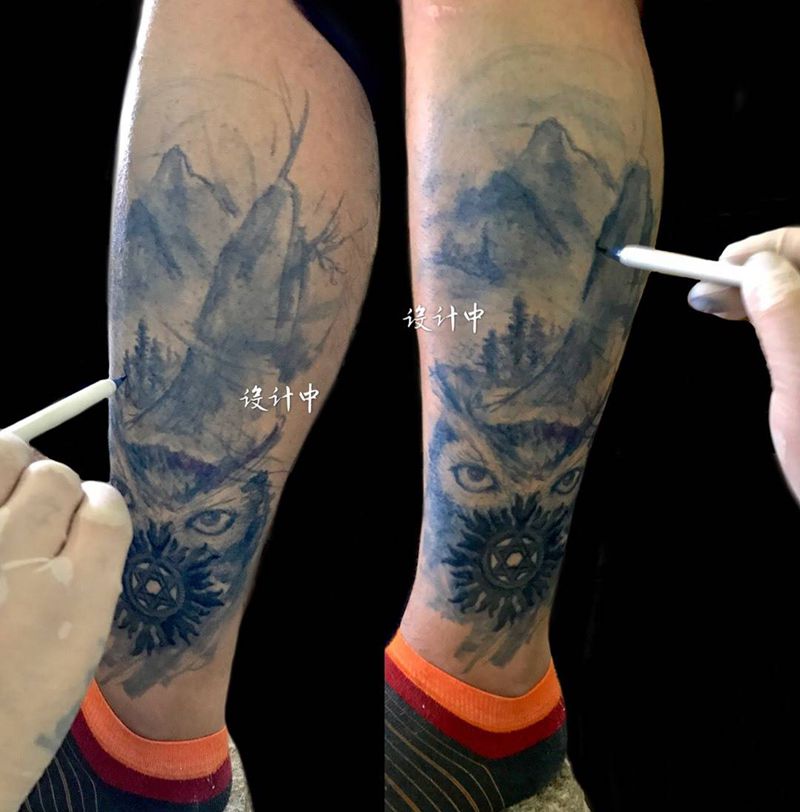 原创遮盖作品纹身图片_成品腿部动物艺奴刺域原创纹身图案