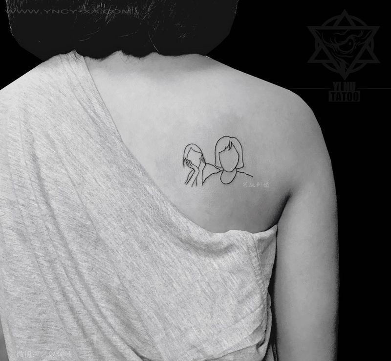 线面纹身图片_艺奴刺域人物肩部纹身图案