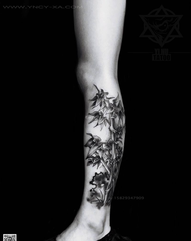 和尚老师原创—竹。遮盖作品[愉快]纹身图片_成品艺奴刺域中国风原创水墨画传统清新腿部植物纹身图案