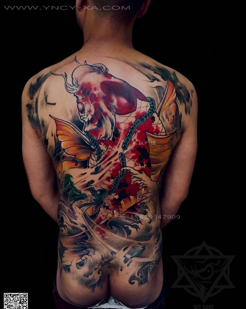 和尚老师原创-富贵的锦鲤鱼儿[愉快]纹身图片_成品艺奴刺域原创动物传统背部纹身图案