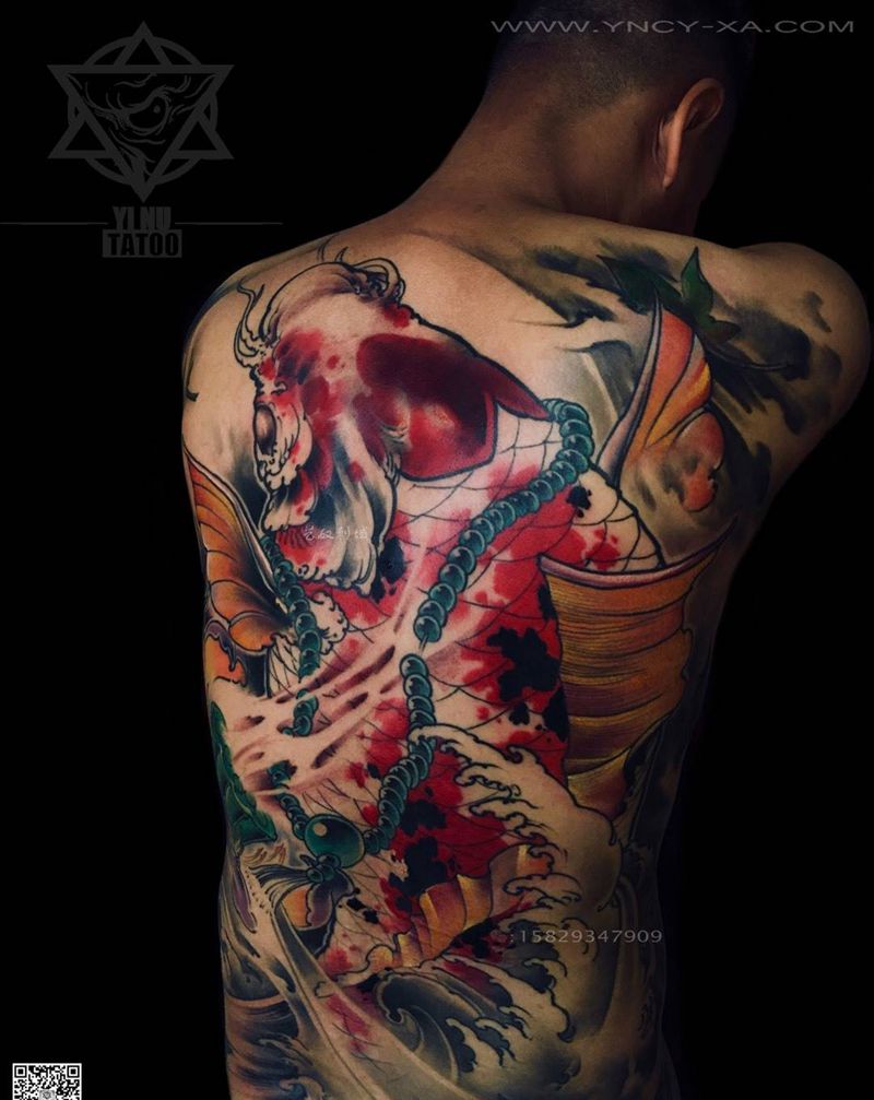 黑灰满背纹身图案