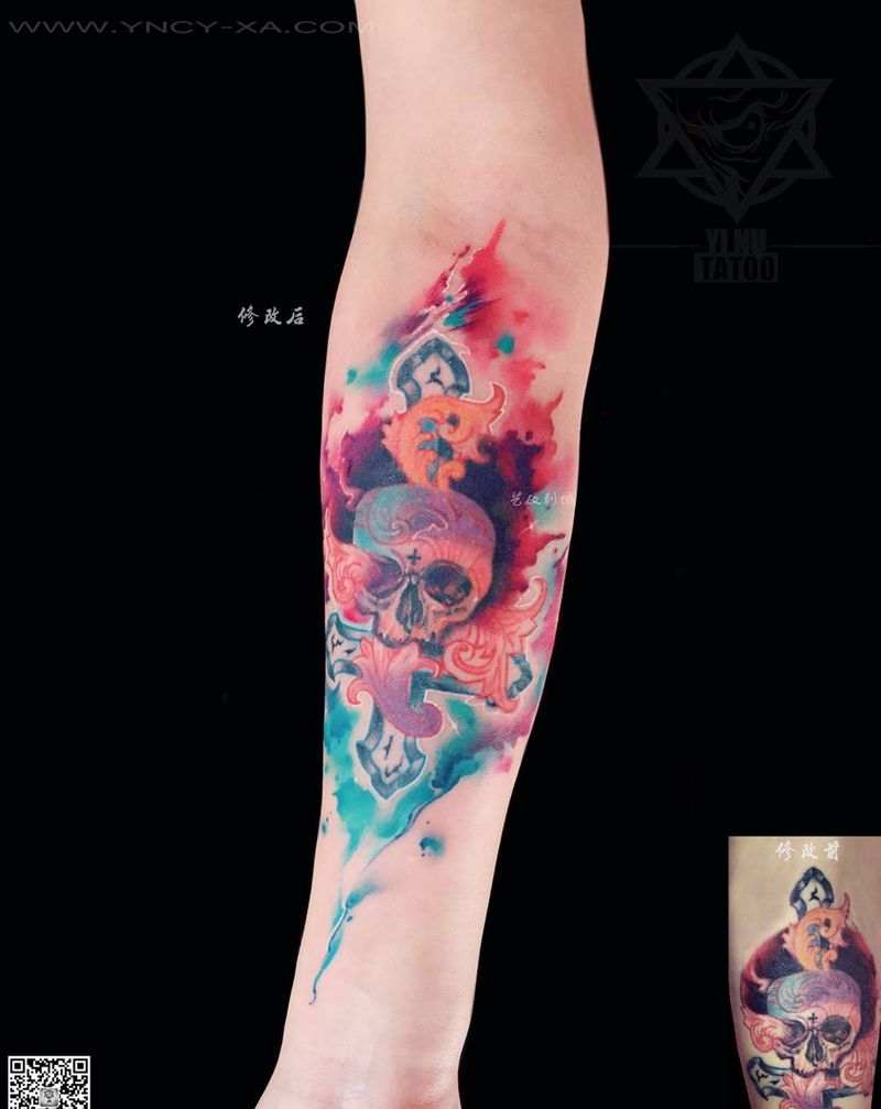 当前位置: 首页 >陕西省西安市纹身店-艺奴刺域纹身图案>修改纹身纹身图片_成品清新手臂纹身图案
