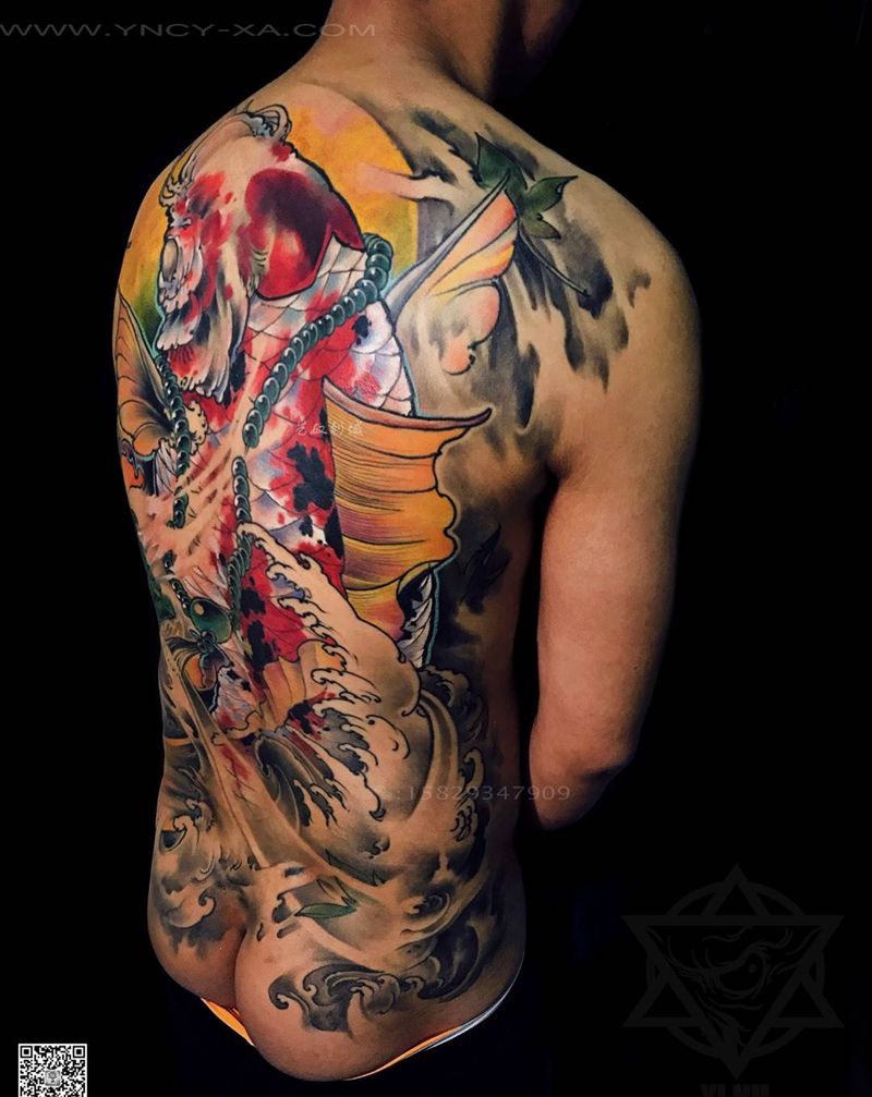 和尚老师原创-锦鲤纹身图片_成品背部传统动物原创艺奴刺域纹身图案