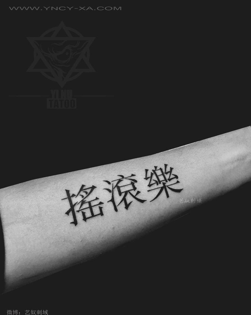 摇滚乐纹身图片_艺奴刺域字符手臂成品中国风纹身图案