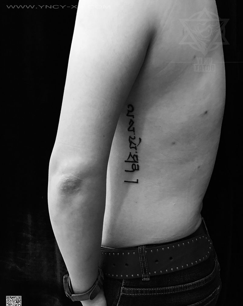 当前位置: 首页 >陕西省西安市纹身店-艺奴刺域纹身图案>藏文纹身图片_艺奴刺域成品腰部字符纹身图案