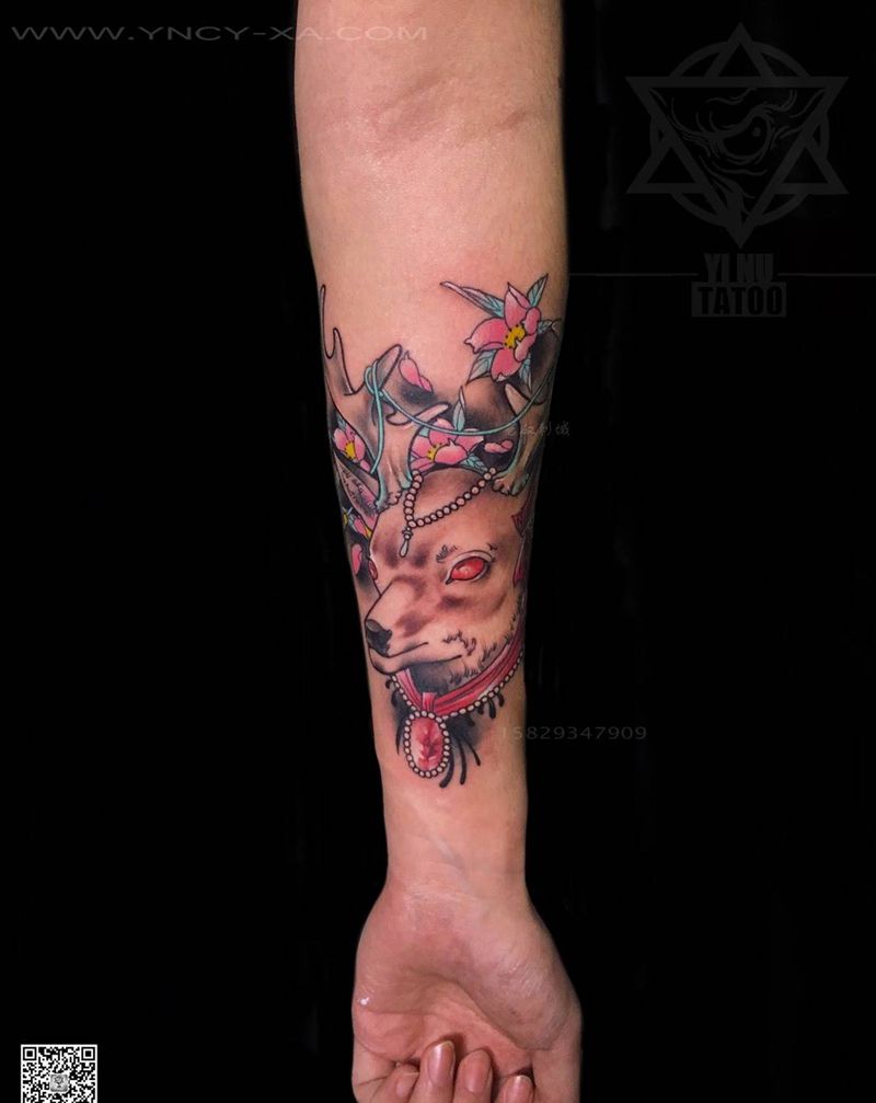 原创—鹿 帅哥美女都爱的永恒主题之一[爱心]纹身图片_成品艺奴刺域原创欧美动物手臂纹身图案