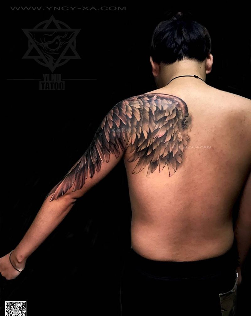 原创翅膀遮盖旧纹身纹身图片_成品艺奴刺域原创手臂纹身图案